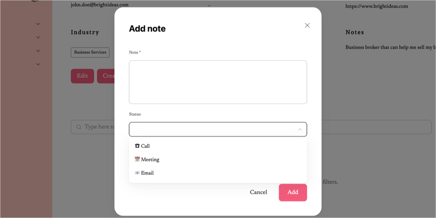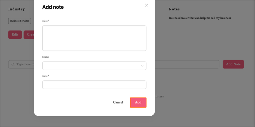 Updating Contact Notes Adding Notes To A Contact Track how often you talk to your network. Building a strong connection takes time, but it's very good for business growth. Step 1: Select Your Contact Step 2: Click 'Add Note' Step 3: Add your contact notes Step 4: Select your contact type Step 5: Select your date Step 6: Click 'Add'